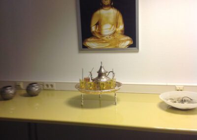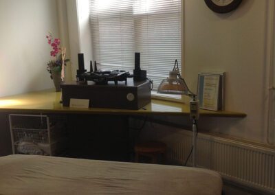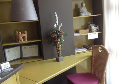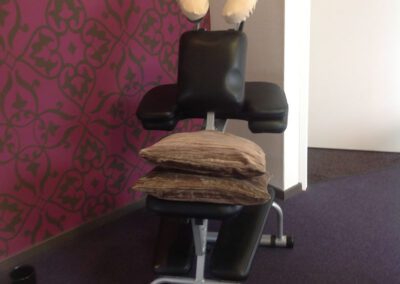 Bij Stoel-shiatsu zit de cliënt met kleding aan op een stoel die speciaal is ontwikkeld om een ontspannen en rustgevende houding aan te nemen. Met manuele technieken bewerk ik de rug- en schouderpartij van de cliënt.